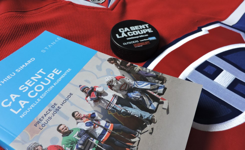 « C’est pour ça que, soir après soir, je me colle devant mon écran de 51 pouces, et je deviens un enfant nono qui pense que tout ce qu’il y a dans la vie, c’est vingt gars en patins, avec des chandails rouges, qui poussent une rondelle, qui crachent partout, qui souffrent sans vraie raison » (Ça sent la coupe, p.222-223).