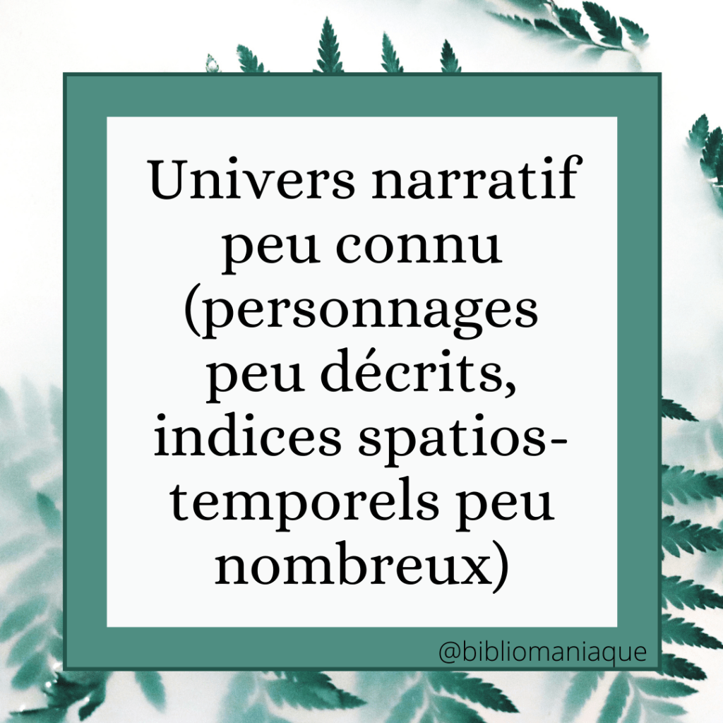 Comme je le mentionnais plus haut, la caractéristique principale de la nouvelle n’est pas sa chute inattendue, mais sa brièveté. Le‧la nouvelliste nous fait pénétrer dans une histoire déjà commencée, laissant ainsi entrapercevoir un instant de vie croqué sur le vif. Cela fait en sorte qu’on se retrouve avec un nombre restreint de personnages, un‧e protagoniste peu décrit‧e (c’est d’ailleurs ses caractéristiques psychologiques qui prennent le dessus), peu ou pas de données spatiales et temporelles.