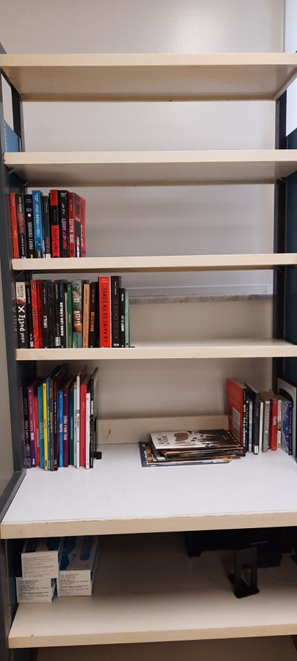 Ça, ça reste encore un défi. Même si je demande à mes élèves de replacer les livres à la fin du cours, le beau rangement est à refaire à tous coups! Cela dit, pour faciliter la recherche des élèves, je pose des autocollants sur mes livres. Rien de bien fancy, juste une indication du genre du roman, que j’écris à la main sur des étiquettes rondes que j’ai commandés sur Amazon.