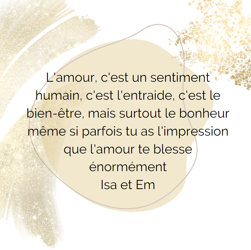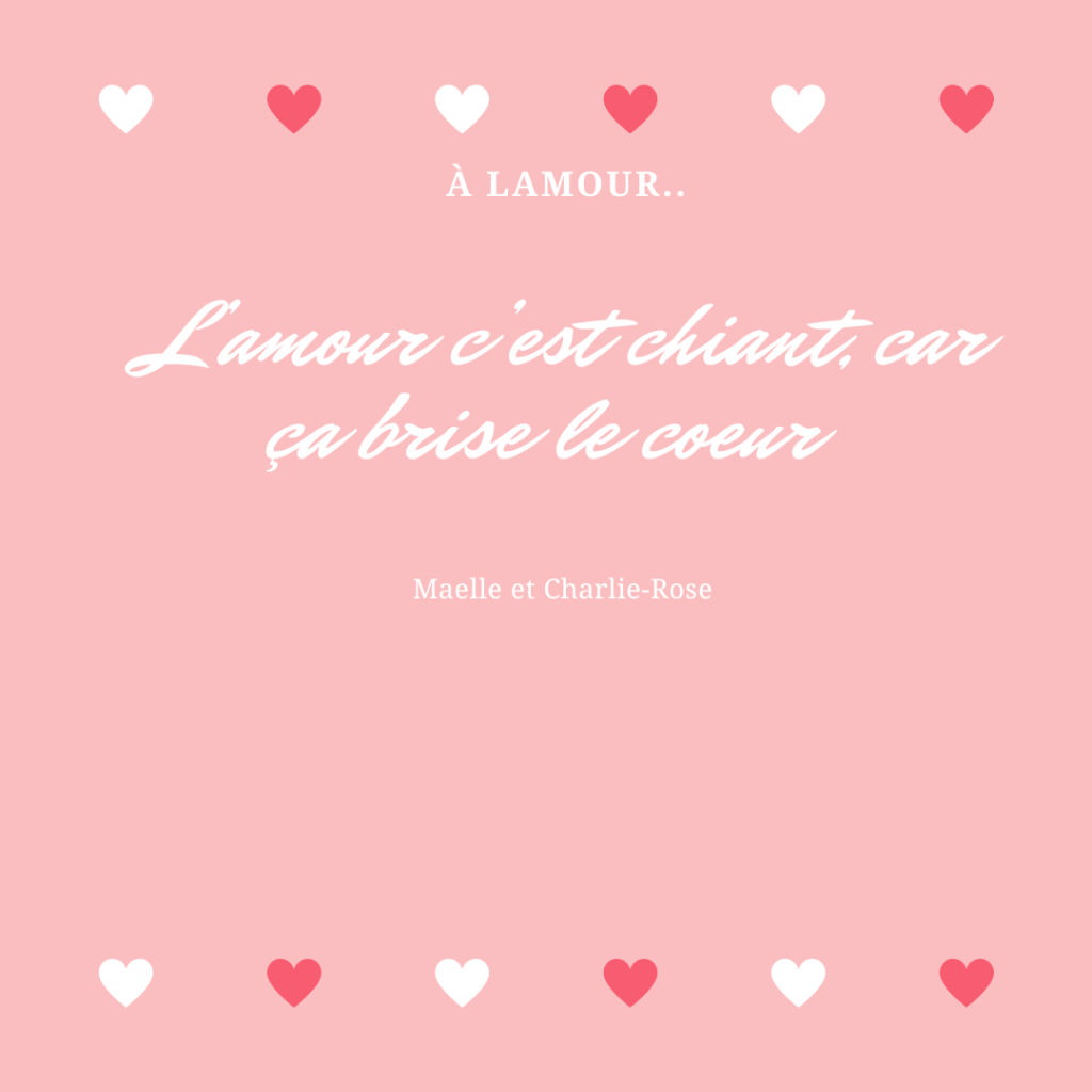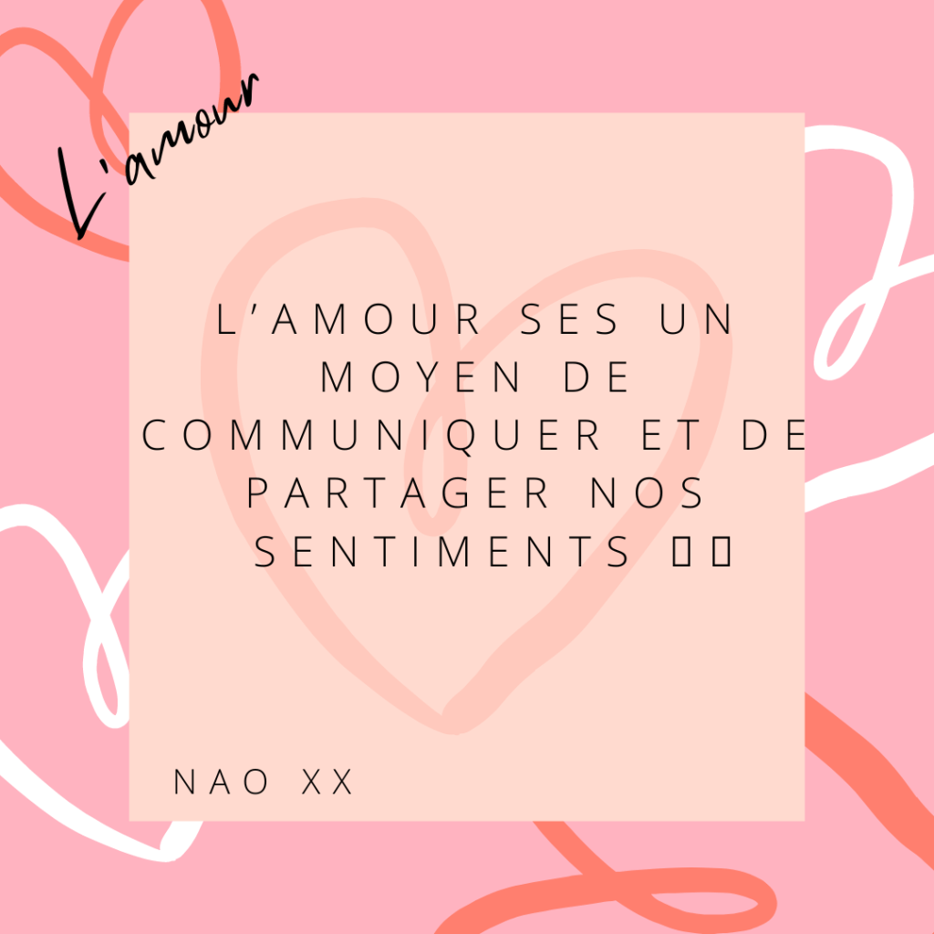 À la suite de cela, les élèves ont mis en application la théorie vue en rédigeant une phrase décrivant ce qu’est l’amour. Leur phrase devait contenir des éléments coordonnés ou juxtaposés. Pour rendre le tout plus ludique, iels ont eu à préparer une publication avec leur phrase. Voici les résultats.