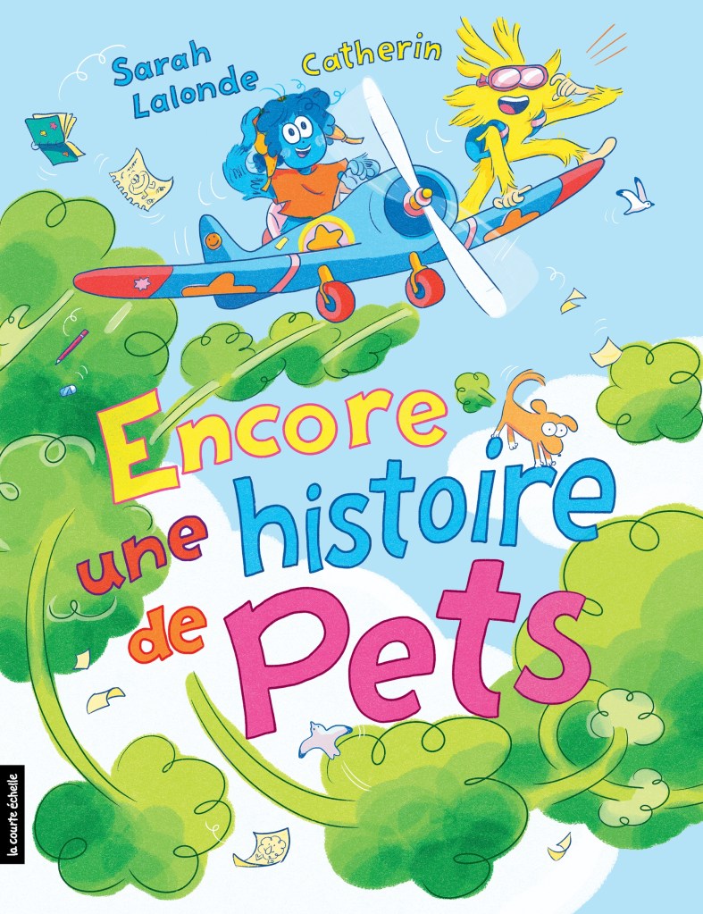 Belle découverte qu’est cet album un peu plus long qui plaira davantage aux plus grand.es. On y suit principalement le personnage de l’autrice (Sarah Lalonde), qui se lance dans la grande aventure d’écrire une énième histoire de pet. Est-ce possible de surfer sur la vague déjà immense de livres qui parlent de flatulences? Si on se fie aux commentaires, c’est possible! C’est donc une histoire, certes, de pets, mais aussi une histoire de publication, de travail d’auteurice.