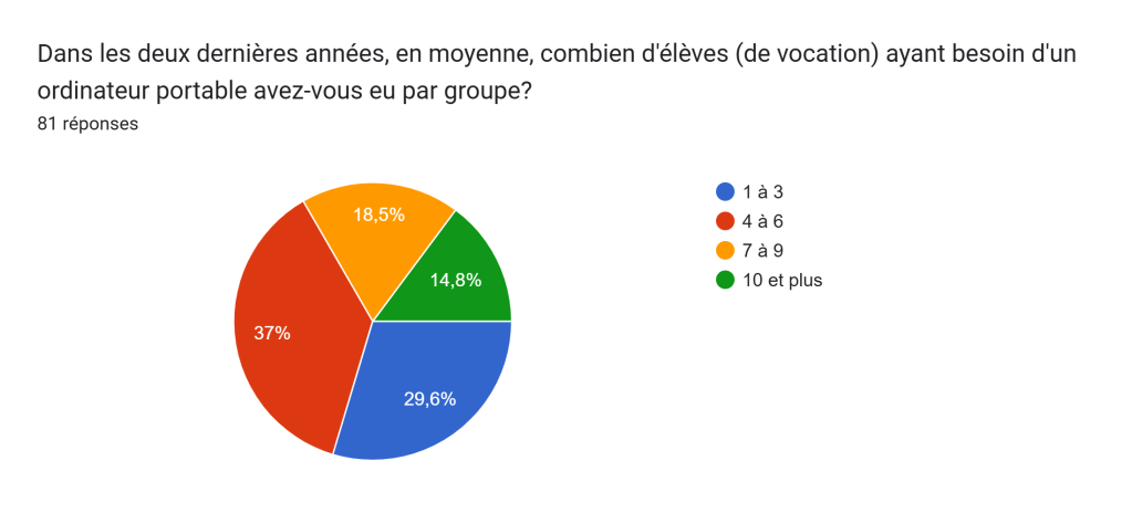 Il va sans dire, même en vocation, il peut y avoir des élèves nécessitant des adaptations ou de la flexibilité dans les interventions. Au régulier, on peut constater que les chiffres sont plus élevés.